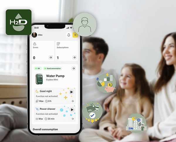 Met de H2D app bespaart u direct geld. De app laat precies zien hoeveel water u gebruikt. Ook ziet u het stroomverbruik van de pomp. Dit helpt u om zuinig te zijn met water.